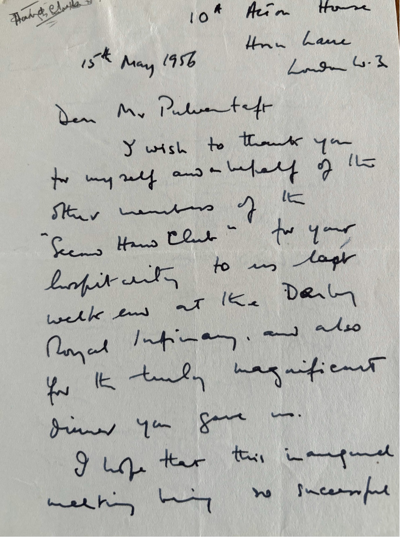 Letter 5 – Guy Pulvertaft to Patrick Clarkson (main instigator of the Hand Club)