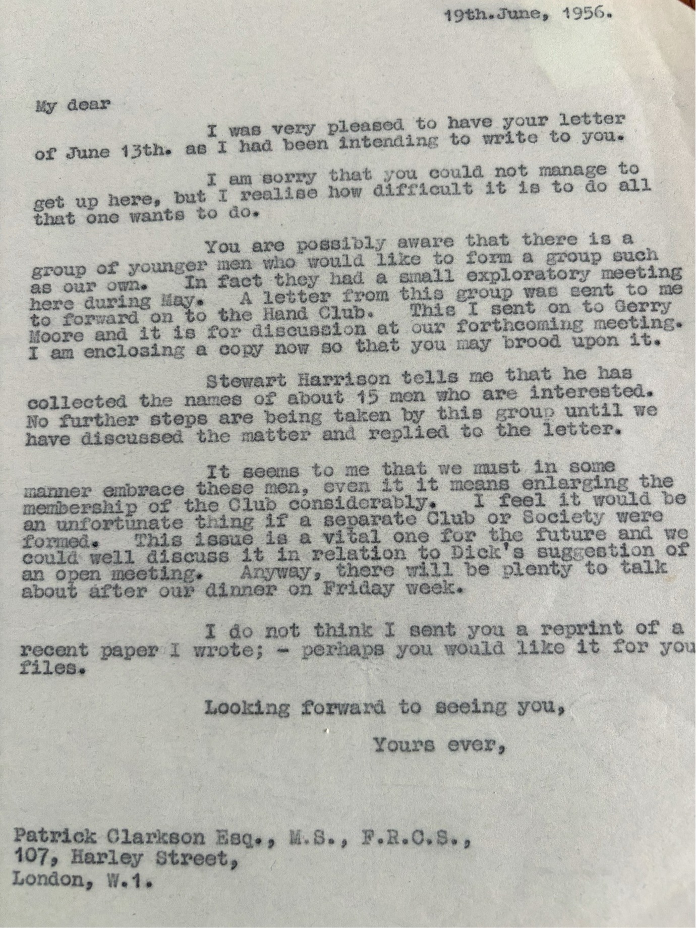 Letter 6 – Guy Pulvertaft to Stewart Harrison (the Hand Club did not wish to expand!)
