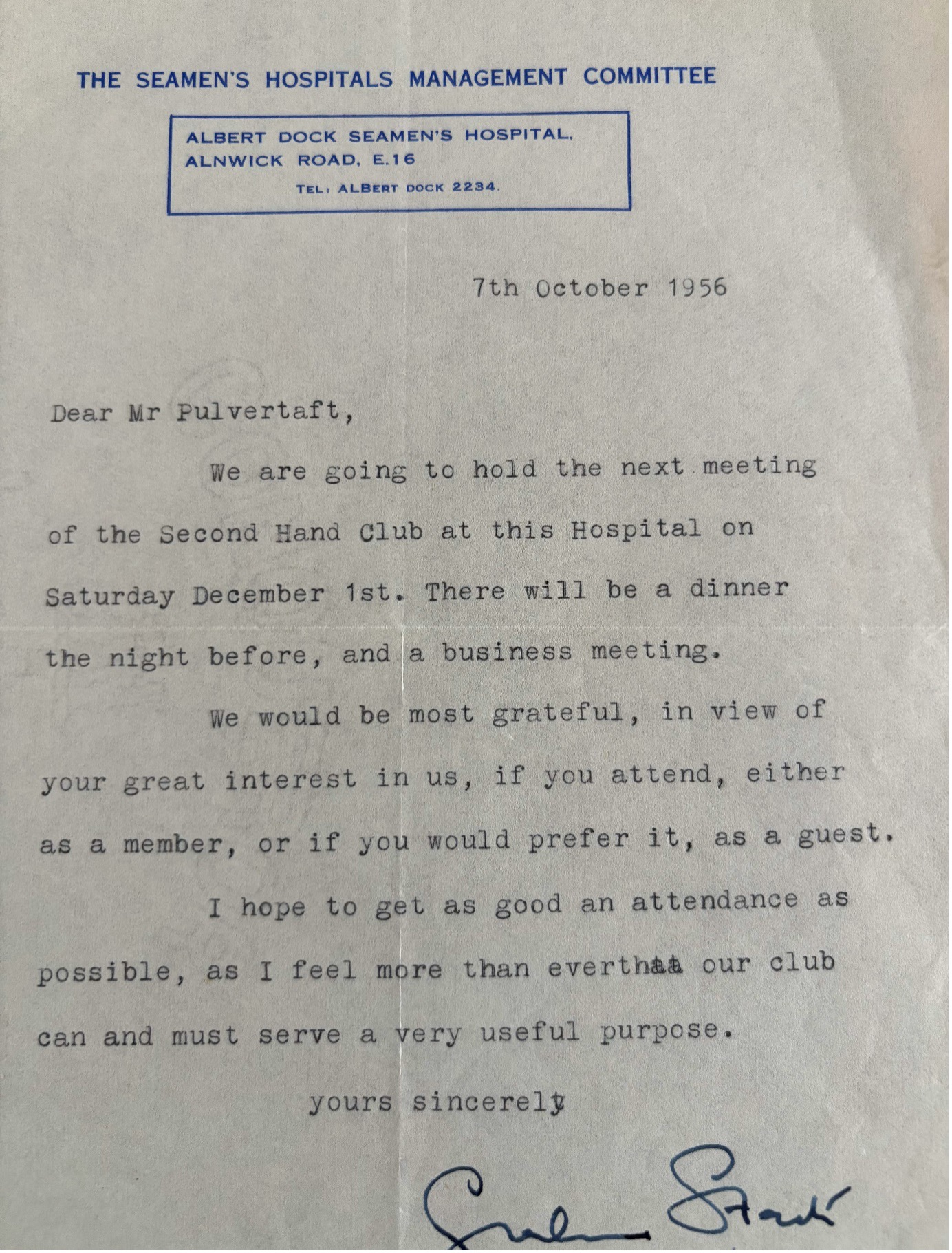 Letter 3 – Letter from Guy Pulvertaft regarding the first meeting of the Second Hand Club