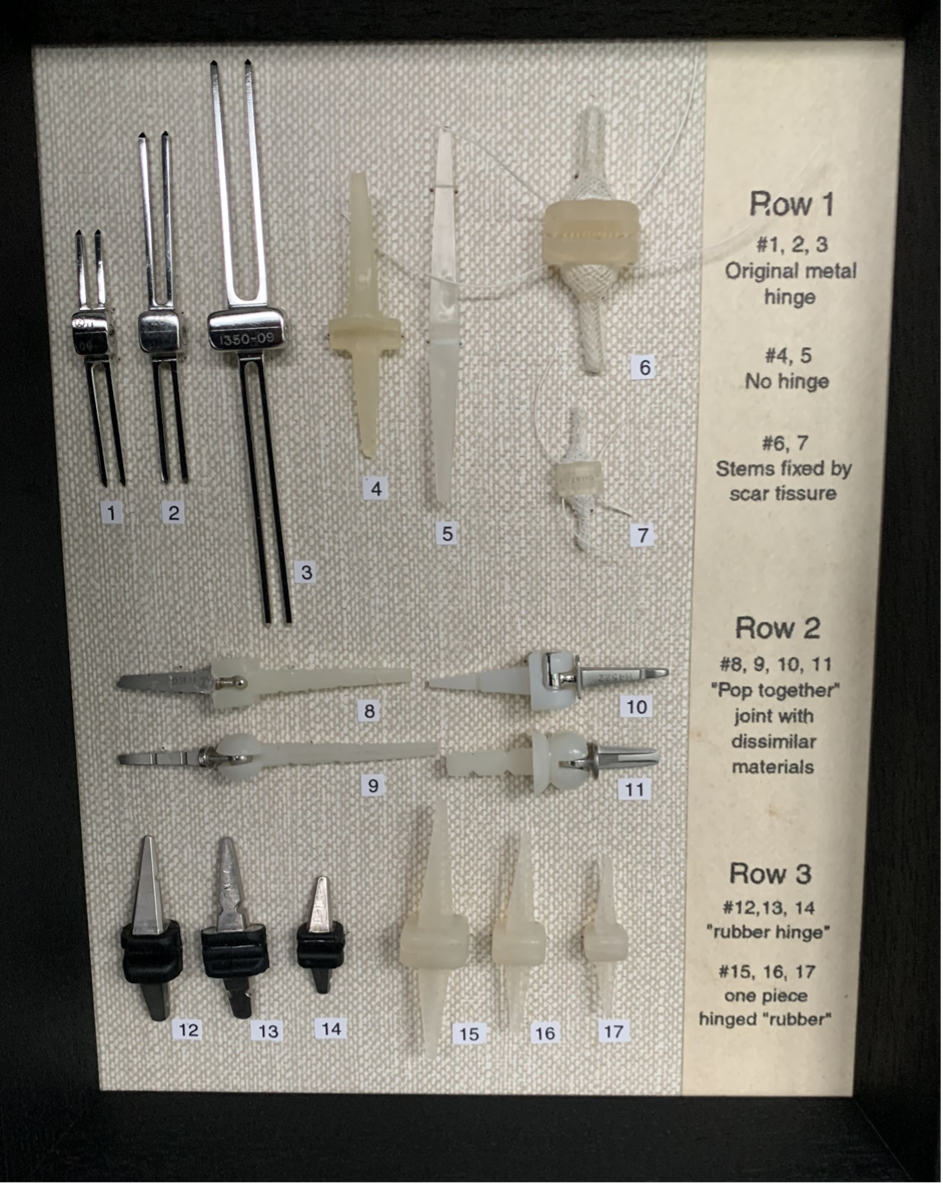 Donated to BSSH by Ian Trail the item below paints a vivid history of the early development of hand implants. It was personally collated by Adrian Flatt (1921-2017) who had a long and major interest in the subject.
