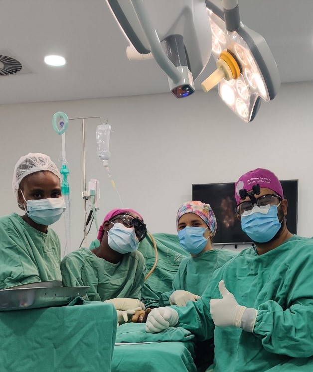 Drs Anne, Fatou and Ali performing a reverse radial forearm flap